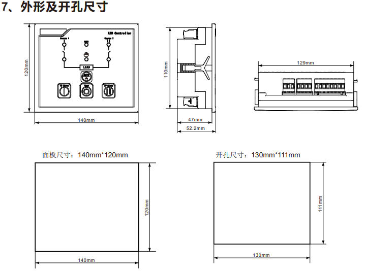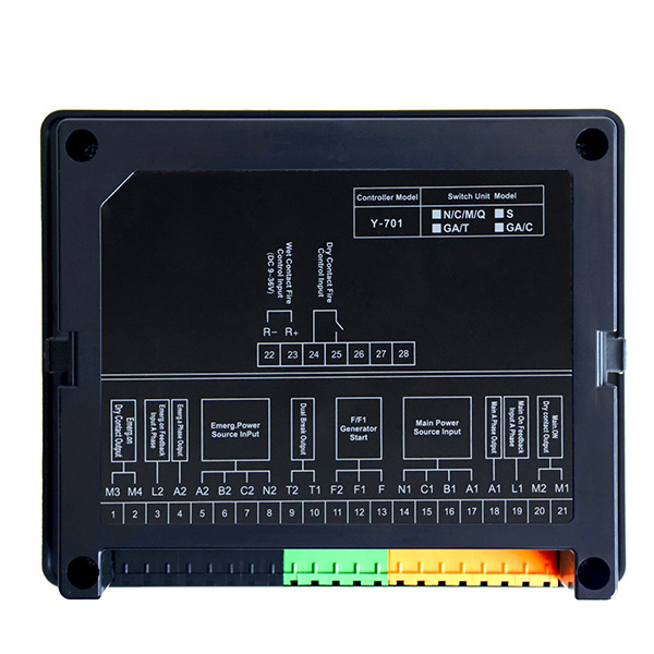 型控制器是一款分体式双电源转换开关控制器。检测电网参数的异常情况(过压 、欠压、缺相、过频、欠频、错相等),根据预定的操作模式自动控制转换开关到合适的电 源,确保负载侧供电的持续性。
