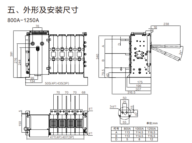 □额定工作电流:800A、1000A、1250A、1600A、2000A。