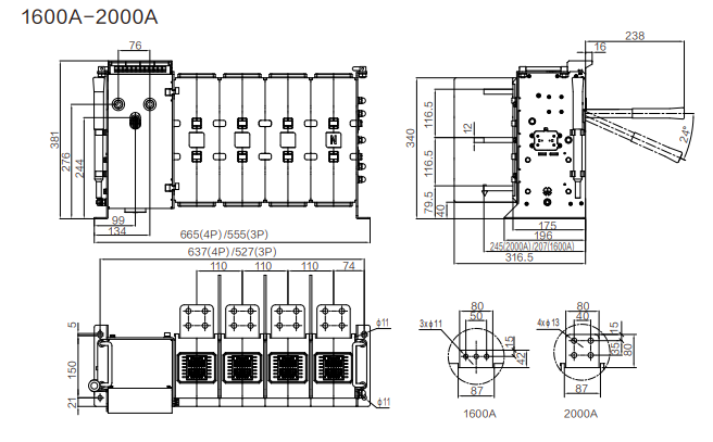 □额定工作电流:800A、1000A、1250A、1600A、2000A。